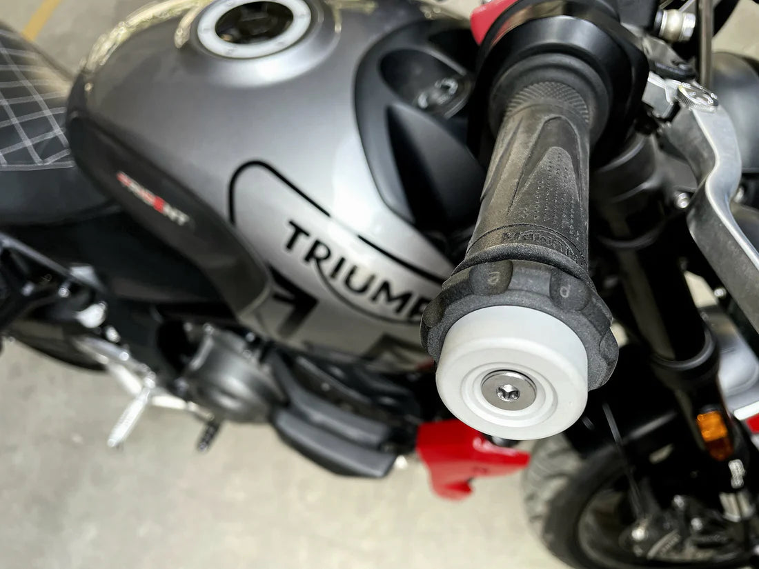 This is a simple mechanical friction throttle control device and is a direct replacement for original equipment weights. The devices are carefully designed to not create any large weight difference between the OE bar end weights and Easy Cruz device. It can be used as cruise mode by turning the knob anti-clockwise or as city mode by turning the knob clockwise. This model is specific for the Triumph Trident 660 without bar end mirrors.