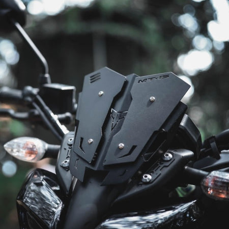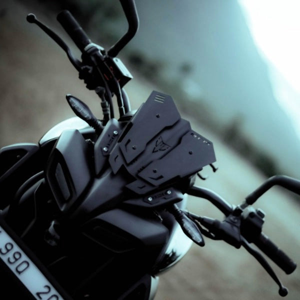 Are you looking for a new design accessory for MT15 motorcycle. Mtechnics introduces MT15 black colored metal visor. It gives a special road presence on your bike.