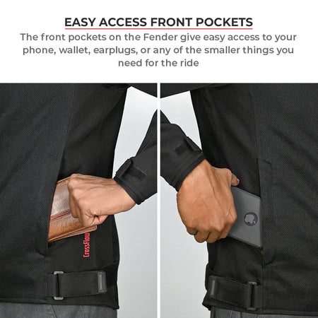 The placement of armour in your riding jacket is just as important as the type of armour used. The Fender Jacket comes with the full complement of Powertector SEB CE Level 2 armour that offers superior impact protection.