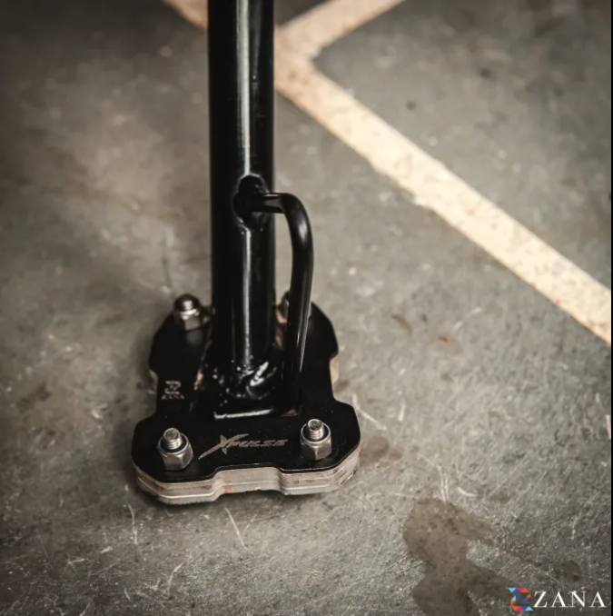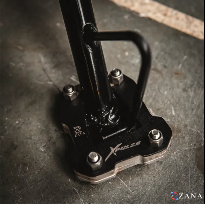 Upgrade your XPulse 210 with this premium Side Stand Extender by Zana, designed to improve stability and prevent the bike from sinking into soft or uneven terrain. Crafted from a high-quality mix of aluminum and stainless steel, it delivers strength, style, and reliable performance.