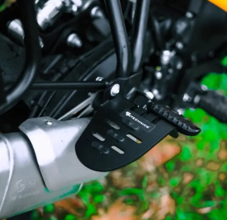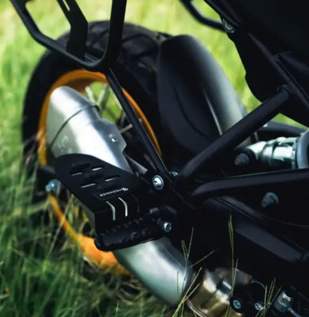 The Himalayan pillion footrest is a durable and sturdy accessory designed specifically for Royal Enfield Himalayan motorcycles. It offers a comfortable and secure foothold for the passenger, enhancing the riding experience on adventurous journeys