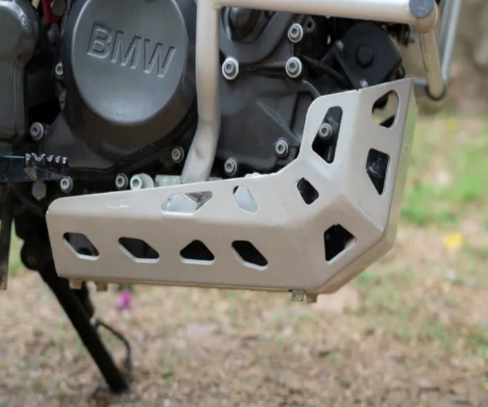 SUMP GUARD for motorcycles fromis a high-quality, thick aluminum bash plate designed to offer ultimate protection to your engine and sump area, both on-road and off-road. This guard is engineered to fit seamlessly with OEM BMW crash bars and engine protector crash bars, providing superior defense compared to stock plastic bash plates. It comes in two stylish color options: black and silver, allowing you to choose the best match for your bike's aesthetic.
