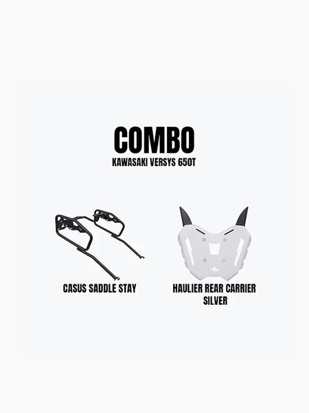 Haulier Rear Carrier Silver & Casus Saddle Stay Combo For Kawasaki Versys 650