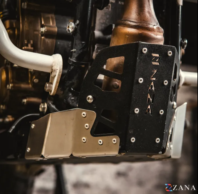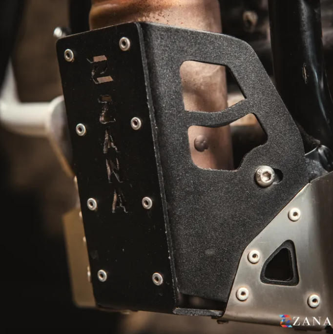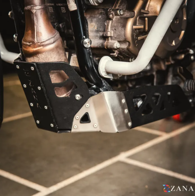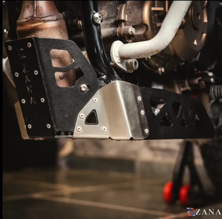 Provides critical coverage for the engine base and oil filter, protecting against off-road hazards. -