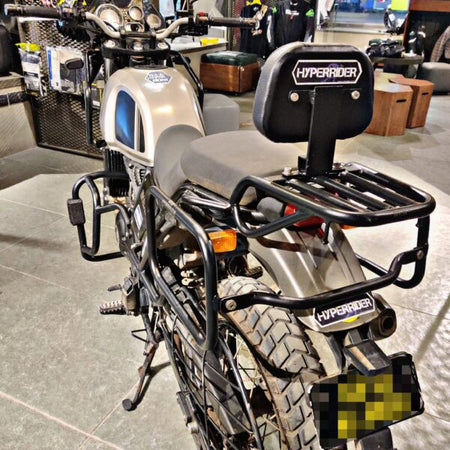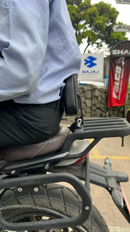Presenting the all-new HONDA/CB200X/HIMALAYAN/GIXER/XPULSE/TVS/KAWASAKI/TRIUMPH – Universal Backrest from Hyperrider for a comfortable ride for pillion riders. The new design comes with a Helmet Lock in the Facility.