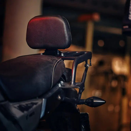 The backrest is made with high-strength steel wrapped in high-grade cushion foam to offer greater comfort for pillion riders. This also ensures a secure and comfortable restraining of the pillion in the event of sudden acceleration. The backrest is shaped not only to complement the sophisticated looks of the Himalayan but also to help grab and move the bike around in a parking space, and also to be a provision to grab and lift the heavy bike in case of a fall.
