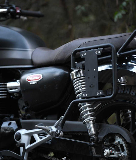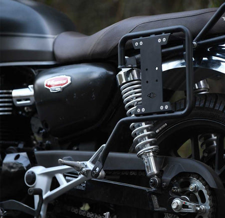 Make it easier to carry your saddlebags on your motorcycle with our Saddle Stay for H'ness from Legundary Custom. Saddle stay will be an ideal accessory for long riders and tourers who need to carry extra luggage with them. Why do you need a saddlestay? A saddle stay is generally used to make sure that the saddlebags stay in place and do not get loose or come in contact with other running parts of the motorcycle. This premium saddle-stay with jerry can mount is ergonomically designed and helps to mount a jerry can along with carrying additional luggage effortlessly. The product featured here is made with mild steel and comes with a jet black finish.