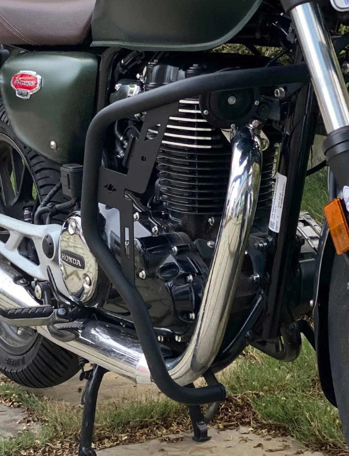 Features: High-quality Rigid steel tubing used to design the Crash guard to withstand any unfortunate crash The guard is corrosion resistant and can last through rough riding and adverse weather conditions. Designed to cover more area to provide more protection to the bike engine area Designed and developed from Legundary custom for Honda Hness CB350