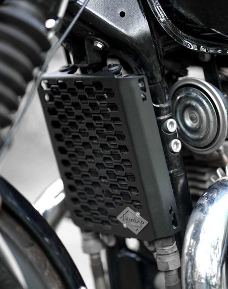 Presenting radiator grill for Interceptor & Continental GT. The product featured here is only suitable for Interceptor and is made with mild steel for a long-lasting design. The packing includes a radiator grill only, as it is a direct fit product A radiator is an important part of a motorcycle’s cooling system. It cools down transmission fluid, regulating the temperature of all the important parts of a motorcycle. Why do you need a radiator grill for your motorcycle? The chances for damage are high for a motorcycle’s radiator. Debris or stones can easily cause damage while off-roading or even on a normal ride. So, it is always better to ensure protection for the same. That's why it is beneficial to install a radiator grill over the radiator to protect it from flying debris.