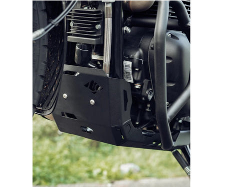 Protect your Royal Enfield Bear 650 on every adventure with the Vambrace Bash Plate, expertly crafted from premium-grade mild steel by Legundary Customs and available at Bandidospitstop. Specifically designed for the Bear 650, this bash plate provides superior protection to the engine and underbody, shielding them from rocks, debris, and other potential hazards. Built for durability, the mild steel construction ensures maximum strength to withstand tough terrains and off-road conditions. Its rugged design not only enhances the bikeโs aesthetics but also guarantees a secure fit for reliable performance during every ride.
