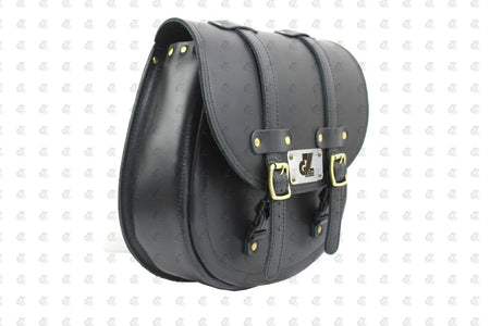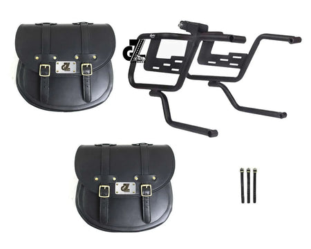 Leather Saddle Bag Black with Saddle Stay Pair for Super Meteor 650