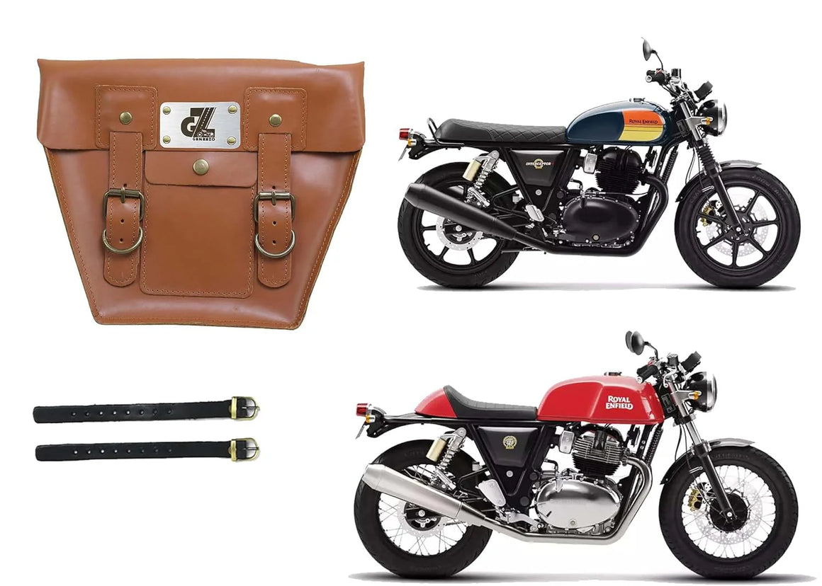 Leather Side Pannel Bag Tan Color with Straps & Rain Cover for Royal Enfield Continental GT & Interceptor 650