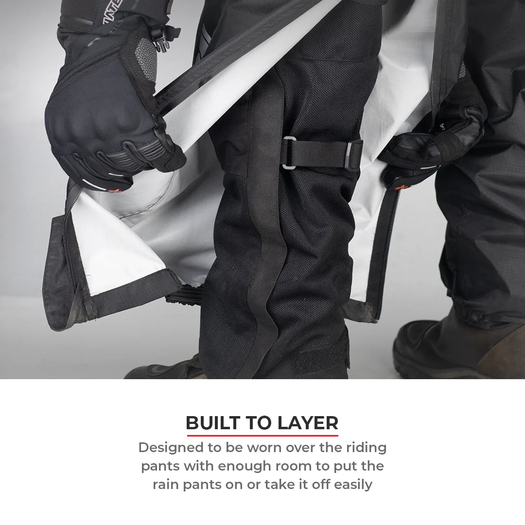 Please ensure there is an additional ease of at least 6-10 cm, i.e. the rainwear allows you adequate space & is not tight fitting. You can check this by wearing the rainwear and stretching your arms out in the riding position to confirm there is no noticeable pulling at the shoulders and the torso area. Tight fitting rainwear could lead to faster wear and tear.