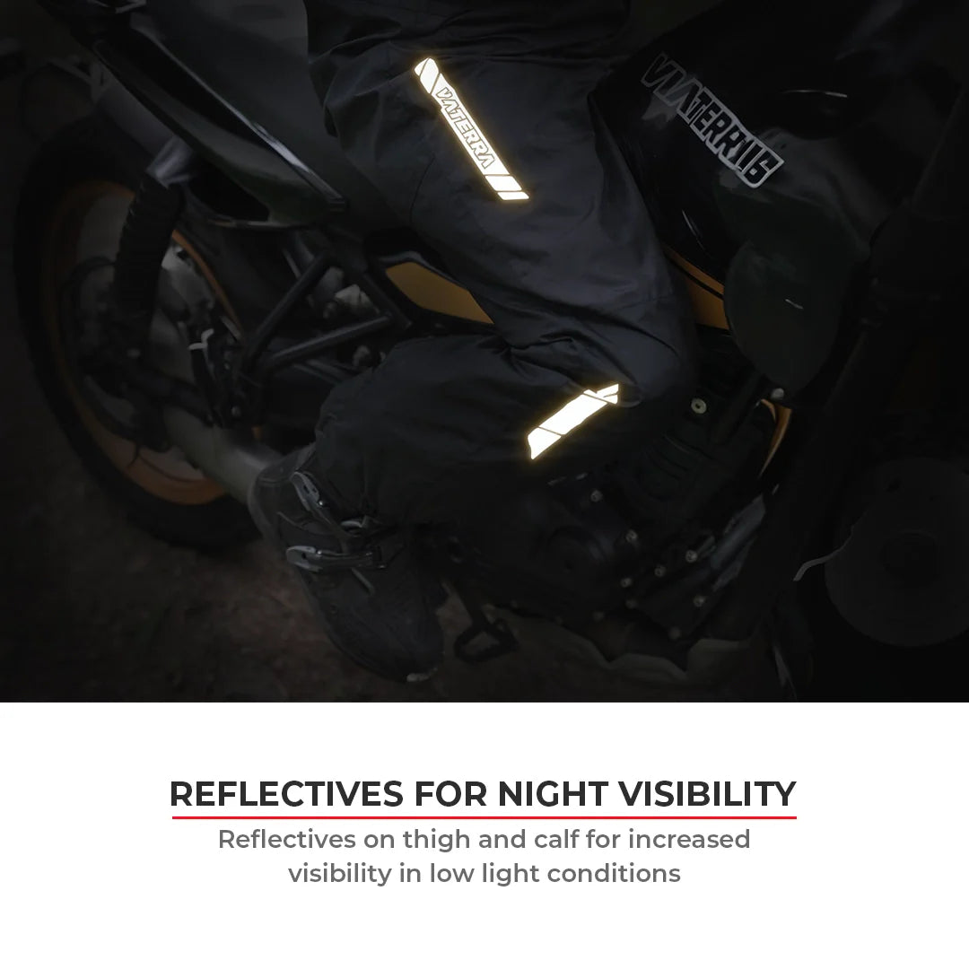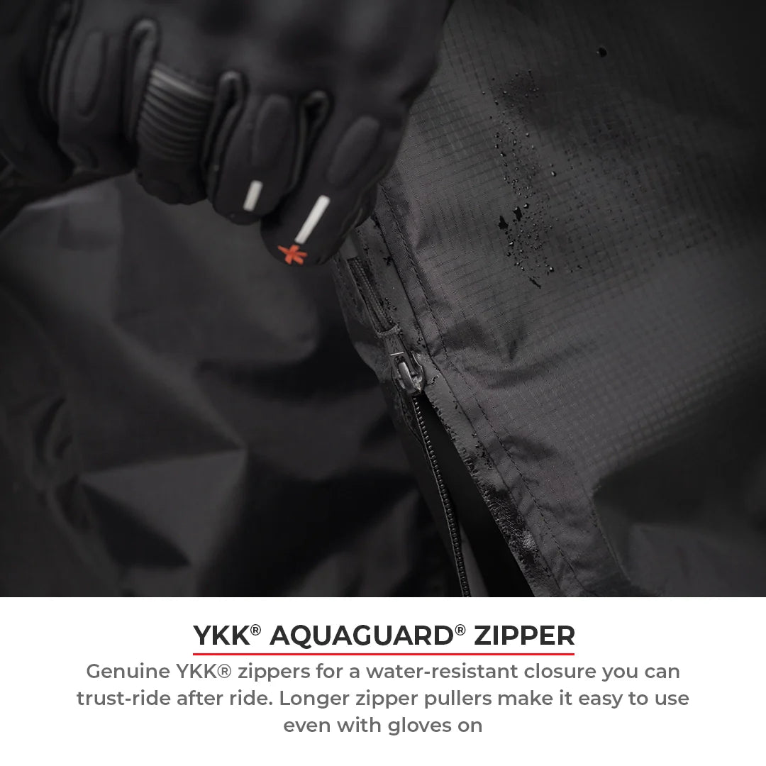 1. Try to avoid accumulation of water on the rain wear (within folds on the rainwear or at the crotch area on the motorcycle seat), as this might result in ingress of water over time. Smoothening the zipper flaps to avoid folds helps. To avoid accumulation of water on the motorcycle seat (at the crotch area) during continuous rain, standing up intermittently helps.