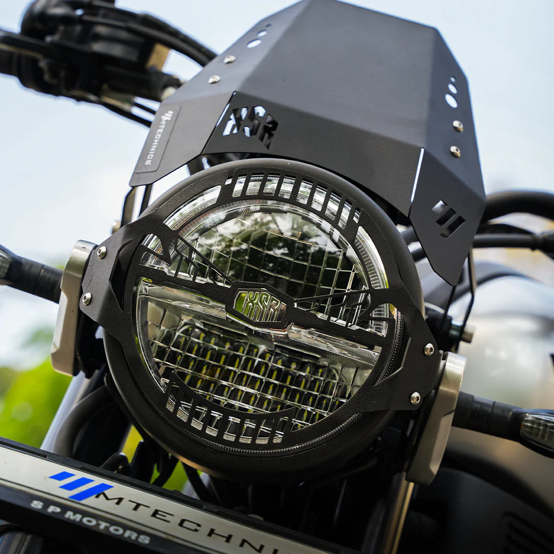 The Mtechnics Headlight Grill for Yamaha XSR 155 is designed to offer reliable headlamp protection while preserving the motorcycle’s classic appeal. Built for Indian road conditions, this accessory shields the headlight from flying stones, debris, and minor impacts encountered during city commuting and highway rides.