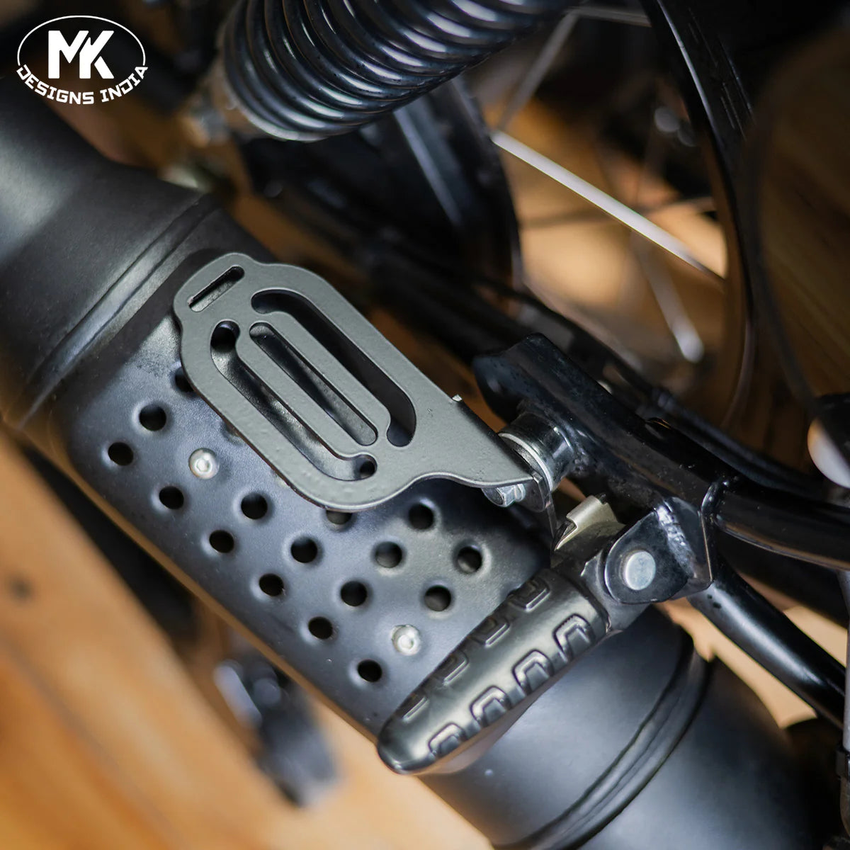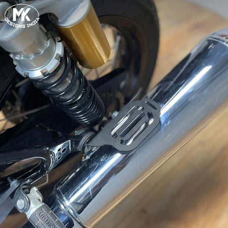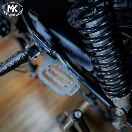 Pillion heel guard designed to protect the passenger’s feet from contact with the exhaust or moving parts. Ensures added safety and comfort during rides.