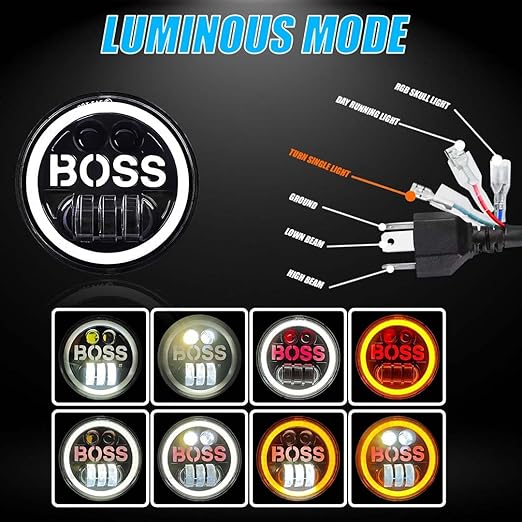MOTO GENIUS 5.7 Inch LED Round Headlight for Harley Davidson & Bajaj Avenger Motorbike (Boss Design)