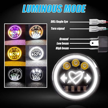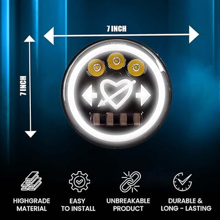 MOTO GENIUS 7 Inch LED Round Headlight for Royal Enfield & Thar (Heart Design)