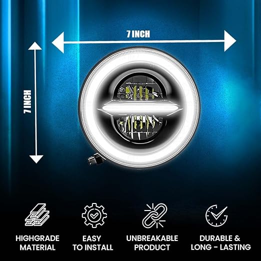 - Perfect Fit for Royal Enfield & Thar: This headlight is specifically designed to fit Royal Enfield motorcycles and Thar vehicles seamlessly. With its 7-inch diameter, it is an ideal replacement or upgrade for the stock headlights of these models. The headlight is engineered to match the dimensions and mounting points of these bikes and vehicles, making installation a breeze.
