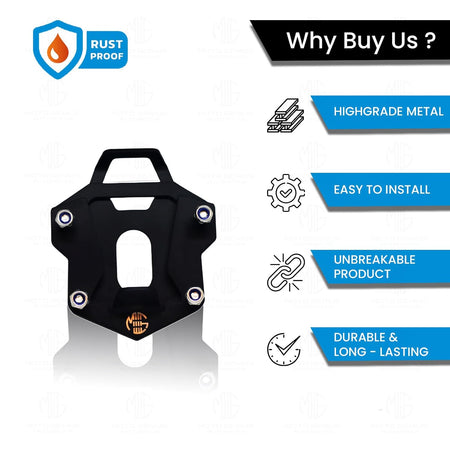 • Robust Steel Construction: Made from heavy-duty steel, this side stand extender is engineered for maximum strength and durability. It offers reliable support and long-lasting performance, making it ideal for both everyday use and rugged riding conditions.