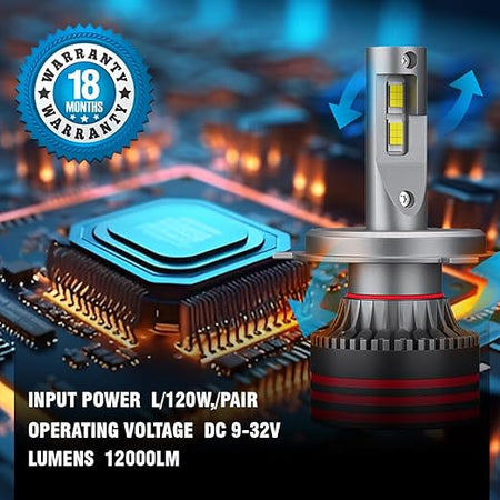 MOTO GENIUS Super Bright 120W Set LED Headlight Conversion Kit for Car & Motorbike,(Pack of 2)