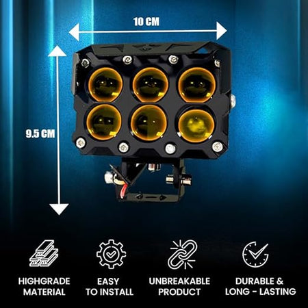MOTO GENIUS Super Bright 6 LED Fog Light Universal Fit for Motorcycle & Car, Waterproof (Pack of 2)