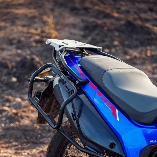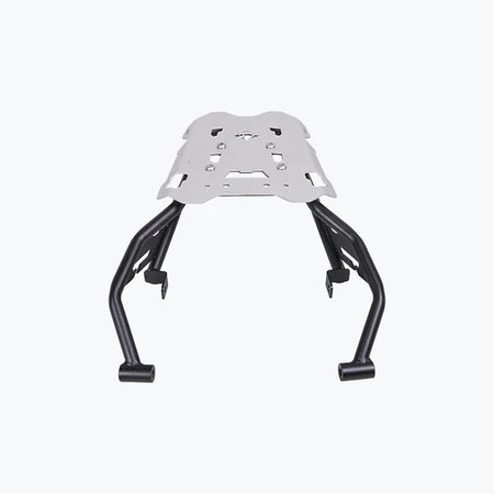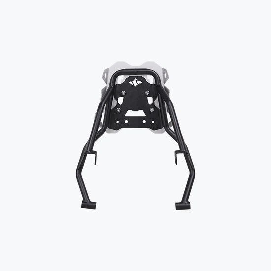 The Legundary Hero Xpulse 210 Gopher Luggage Carrier Black and Silver available at Legundary Custom Built is designed to enhance your Xpulse 210 touring capabilities by providing a sturdy platform for carrying luggage. Crafted from a combination of mild steel and aluminium, this carrier offers a balance of strength and lightweight construction, ensuring durability without compromising the X pulse 210 performance. The black and silver finish adds a sleek aesthetic that complements the Xpulse210 design. Its precision-engineered fitment ensures easy installation, allowing riders to securely mount various types of luggage including top boxes and duffel bags making it an ideal accessory for long-distance travel and daily commuting.