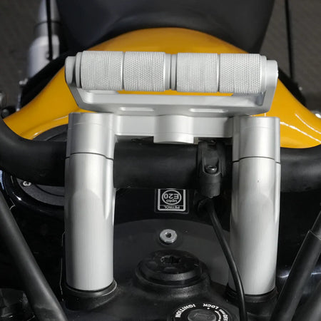 Enhance the comfort and functionality of your Royal Enfield Guerrilla 450 with the Handle Bar Riser with Mobile Mount and Top Mount Combo Set. This premium accessory set is designed to improve your riding posture, add versatility, and provide a secure mount for your GPS or mobile device during your adventures.