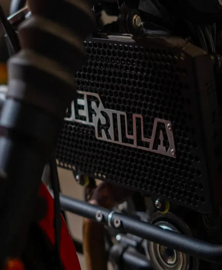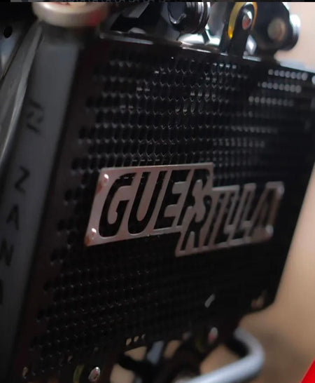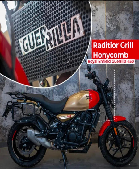 Upgrade your motorcycle with the Radiator Grill With Logo for Guerrilla 450 (Honeycomb Black Texture) - Type-2 to ensure efficient cooling and maximum protection. Perfect for riders who prioritize performance and durability, this accessory is an essential addition for any Guerrilla 450 owner.