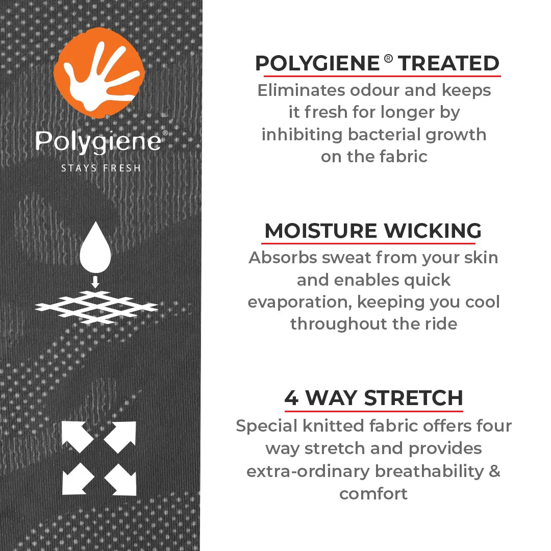 Treated with industry-leading Polygiene StayFresh antibacterial technology which inhibits the growth of odor-causing bacteria, so garments need less washing, saving water, energy and wear and tear.