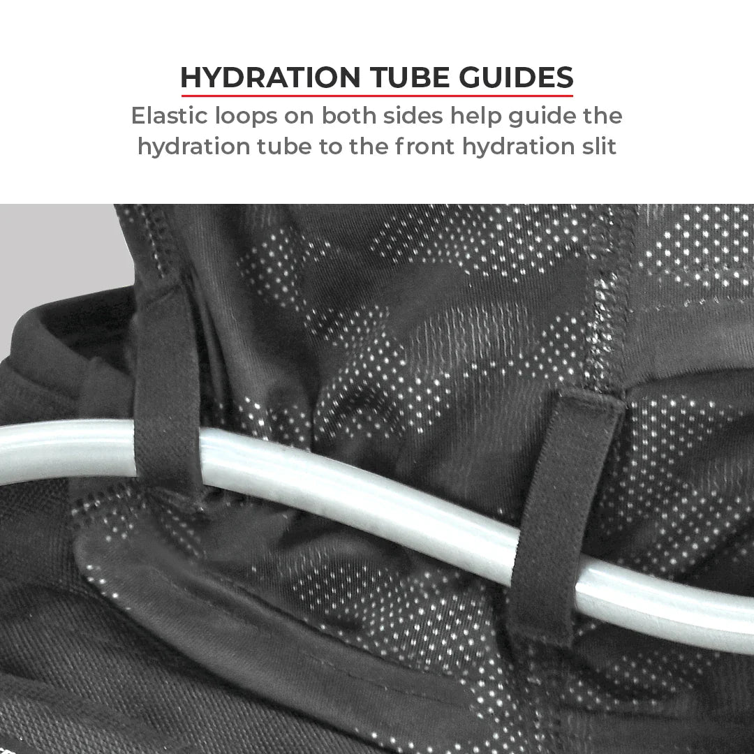 • Hydration slit & tube guide for easy access to the hydration tube during rides