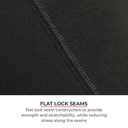 Flat lock seam construction to provide strength and stretchability, while reducing stress along the seams