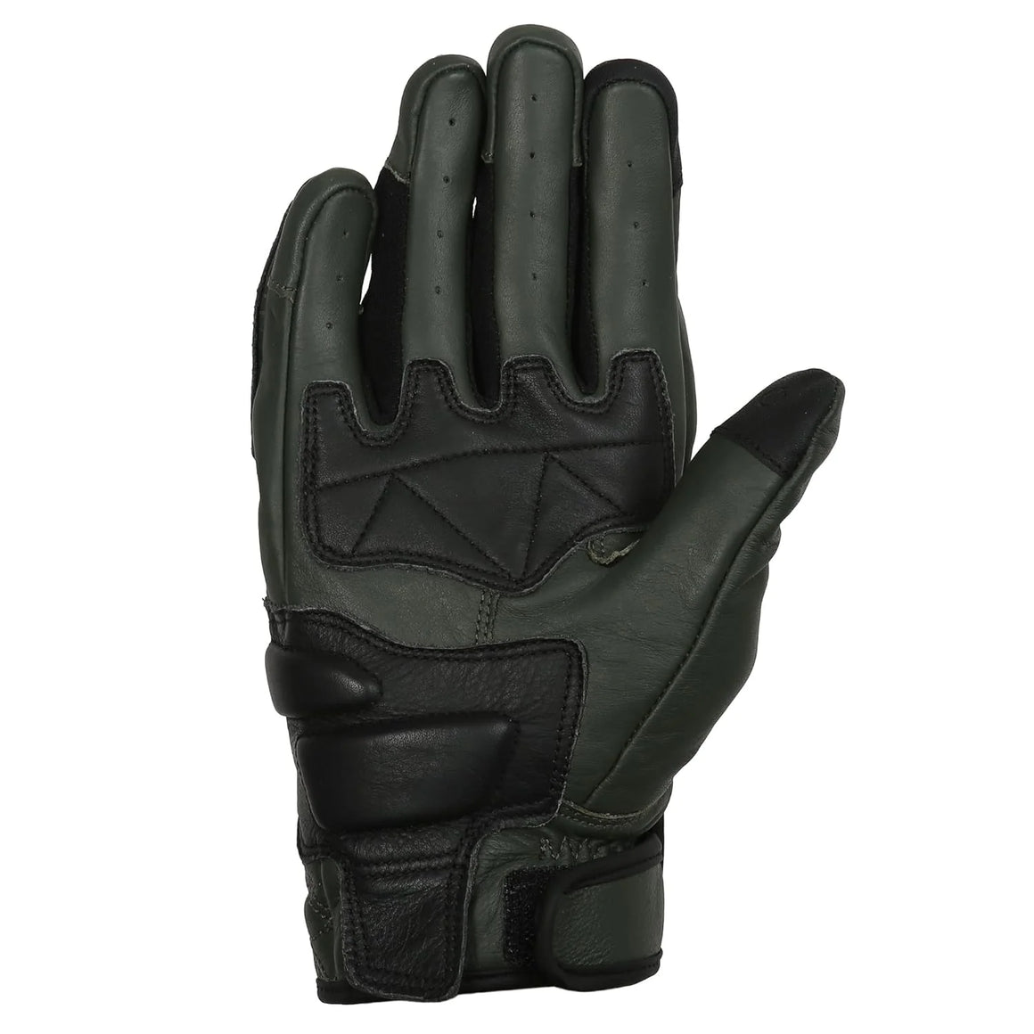 ROYAL ENFIELD BRAVADO GLOVES OLIVE & BLACK Crafted with premium leather with padded cuffs and fingers, the Bravado Gloves go the extra mile with you on your rides. The all-leather gloves are abrasion-resistant, making them highly durable and dependable. Perfect for long and adrenaline-filled rides, this pair flaunts thick cushioning and extra-padded cuffs to keep you safe and comfortable at all times.