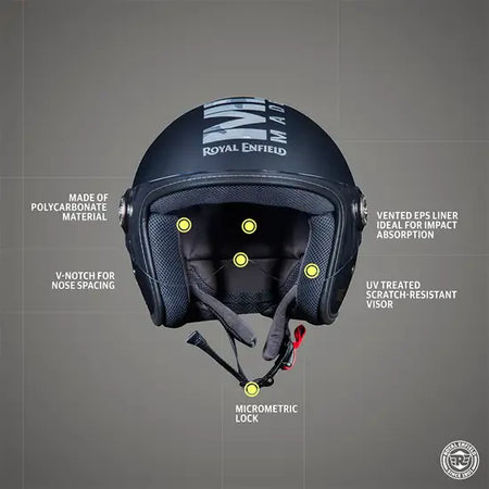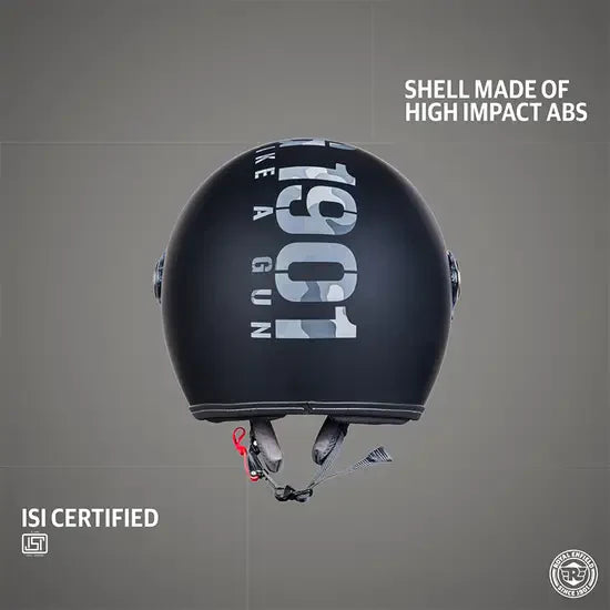 Inspired by our MLG collection, the Classic Jet Camo MLG helmet gathers the charm of a timeless design and great comfort. With a distinctive Camo print, it is built for long rides, it is compatible with the riding goggles to keep the dust and other elements out of your eyes. PRODUCT HIGHLIGHTS Design: Open face with visor. Shell Construction: Outer shell made of high-impact grade thermoplastic shell. Impact Protection: High-density EPS liner for better impact absorption. Comfort: Comfort liner made of a combination of knit, mesh, and polyester. Lock: Micrometric lock with D-ring. Weight: 1000 +/-50 grams. Certification: ISI (IS: 4151) certified.