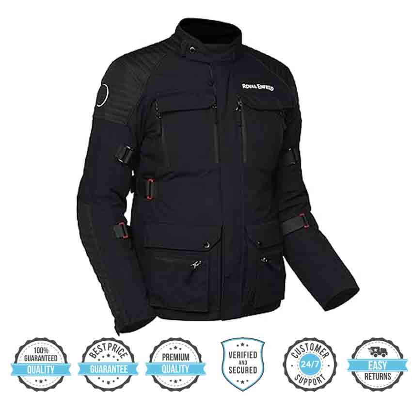 - Construction: 500D 100% Nylon; Abrasion Resistant: Premium high abrasion resistant mesh with high air permeability; Impact Protection: 610D polyester cordura at impact zones; D3O Level 2 - T5 Evo pro - removable protectors for shoulder and elbow D3O level 1 for back support and CE level 1 for front protection; Water resistant – PU coating for water resistance ; Fit: Regular ; Layers : 3 ; Detachable thermal liner; Rain liner; Adjustment tabs on cuffs, collar, waist, elbows, biceps and forearms; Ribbed stretch panel on elbows; Weather protection; Ventilation -Air vents located in centre front, chest and back; Reflective Branding on front and back;