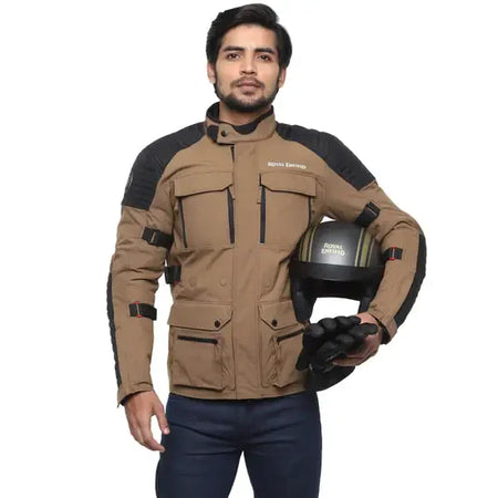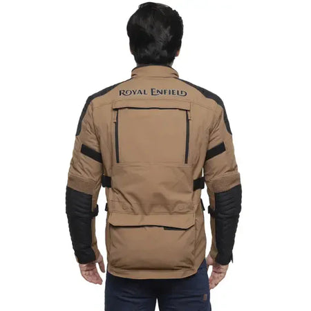 The Royal Enfield NIRVIK jacket creates a new standard in touring jackets. Crafted from high-density NYLON & Cordura fabrics, quipped with D3O – T5 EVO PRO/CE Level 2 protectors around the shoulders and elbows, this jacket provides superior protection against impact and abrasion yet remains light. CE-certified Level 1 protection at the back and Level 2 at the chest adds another layer of safety, whether on asphalt or gravel. In addition, an array of features like a detachable thermal layer, a rain jacket that can be worn either as an inner or outer liner, large ventilation areas in high airflow mesh, and five spacious pockets for storing essentials, make this jacket the best bet for creating legends, be it cruising the highways or blazing new trails. PRODUCT HIGHLIGHTS