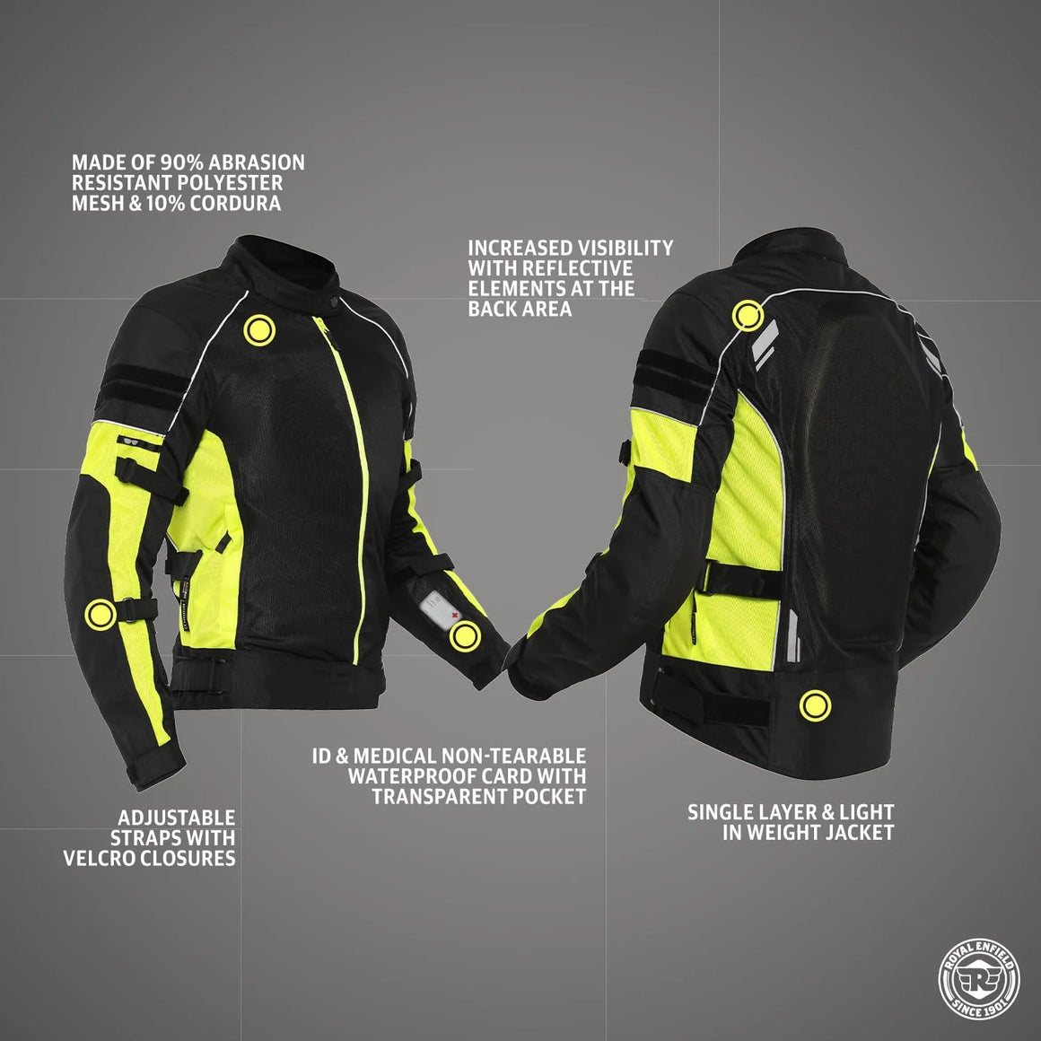 - Impact Protection: Equipped with Royal Enfield Ergo pro-tech CE level 2 protectors at the shoulder, elbow, and back. In addition, there are CE level 1 Ergo pro-tech armours at the chest.