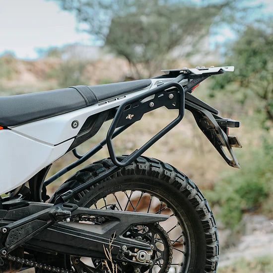 The KTM 390 Enduro R Casus Saddle Stay available at Legundary Custom Built is a rugged and reliable accessory designed for riders looking to expand their luggage-carrying capacity without compromising on handling or style. Expertly formed from heavy-duty mild steel and finished in a durable matte-black powder coat, this saddle stay offers exceptional strength and corrosion resistance for real-world adventure conditions. It features a precision-engineered. The stayโs three-point structure keeps your saddle bags securely in place, safely distanced from hot exhaust components and moving parts, while maintaining ground clearance and clean aesthetics. Lightweight yet structurally solid, this accessory ensures stable load support for long trips and tough trails, making it a smart upgrade for any KTM 390 Enduro R owner.