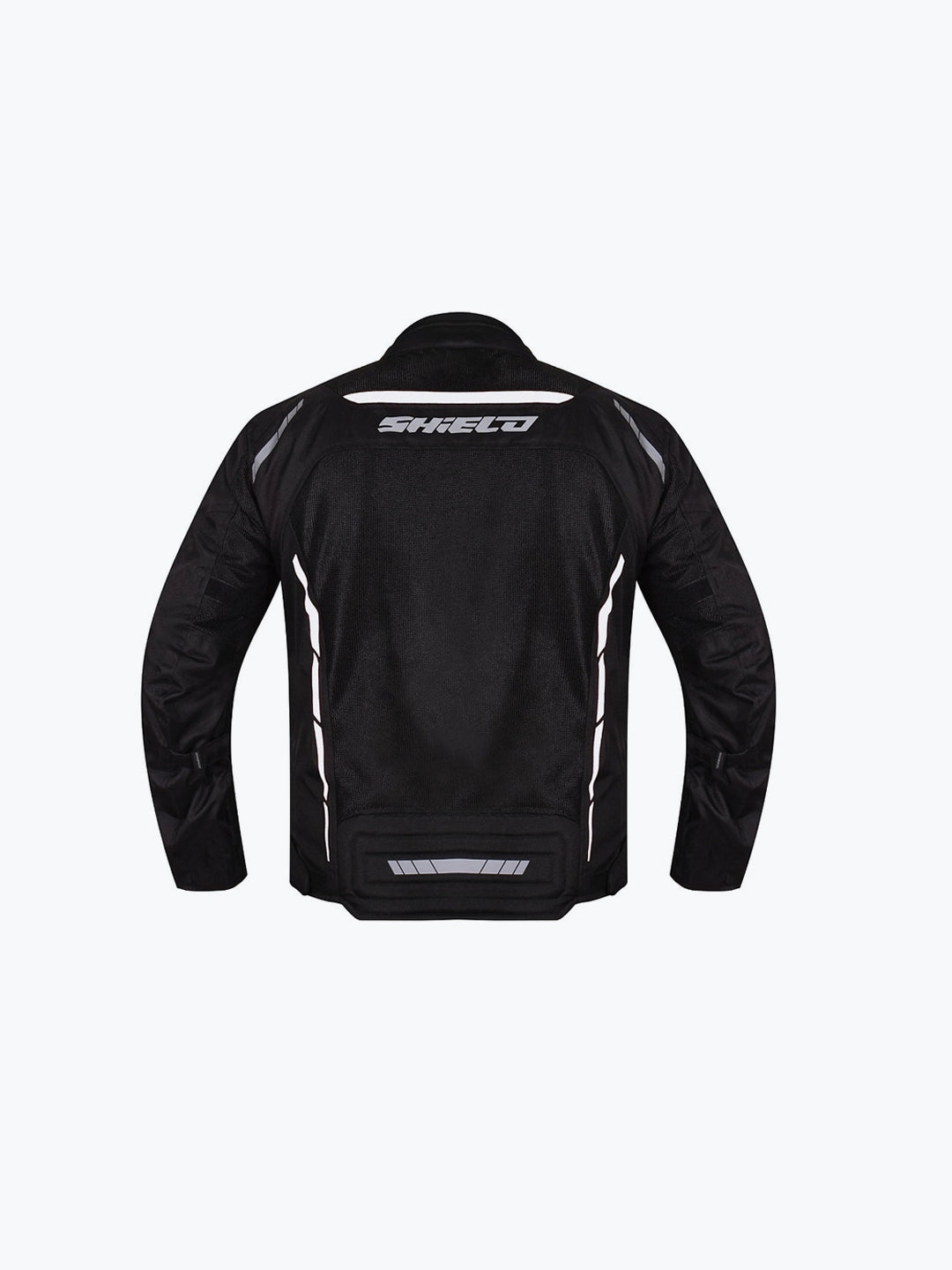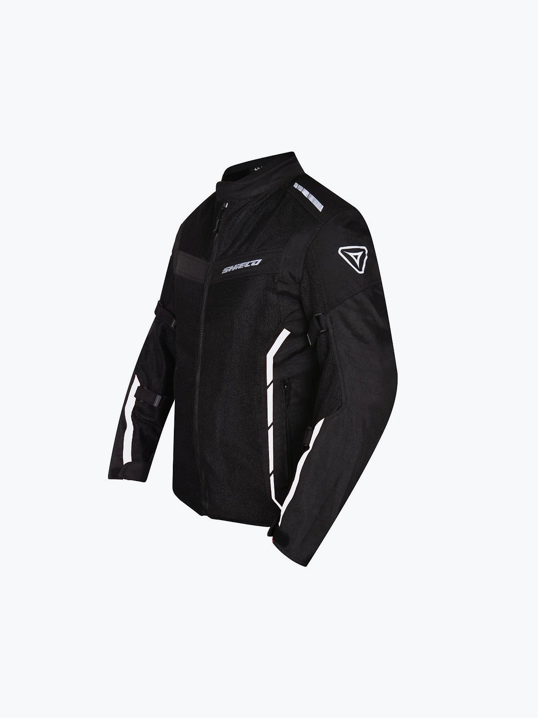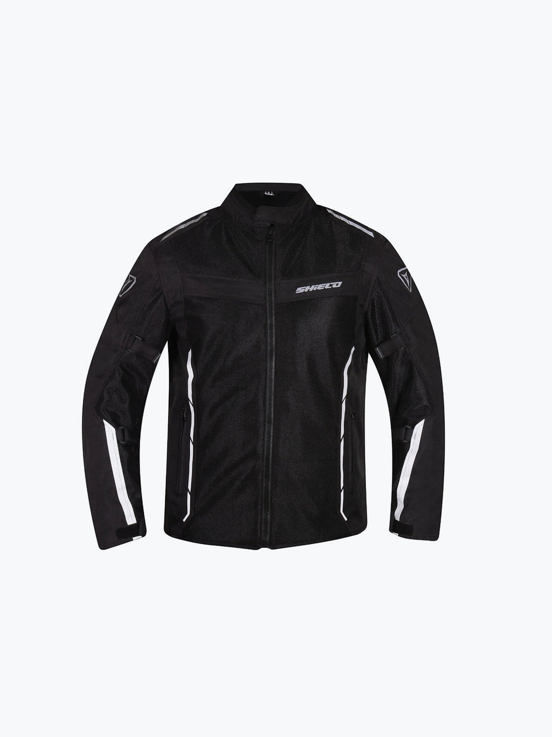 Features: Outer Fabric: 3d Air Mesh, Hexagon Polyester 300d And Lorica V-Shaped Cover Flap At The Cuff Soft Collar Edge Short Connection Zipper Jeans Loop Adjustment At Waist, Cuffs And Upper Arm Wind Catcher Behind The Front Zipper Reflective Fabric