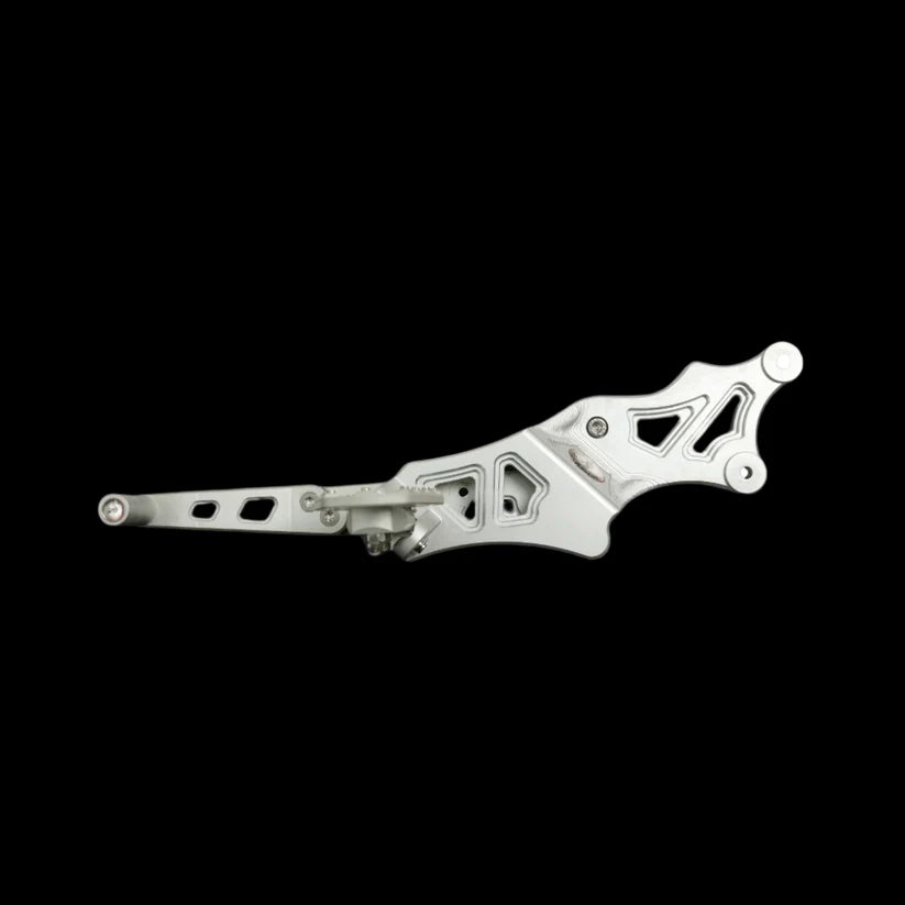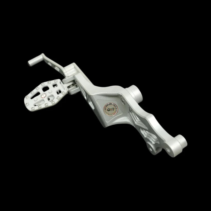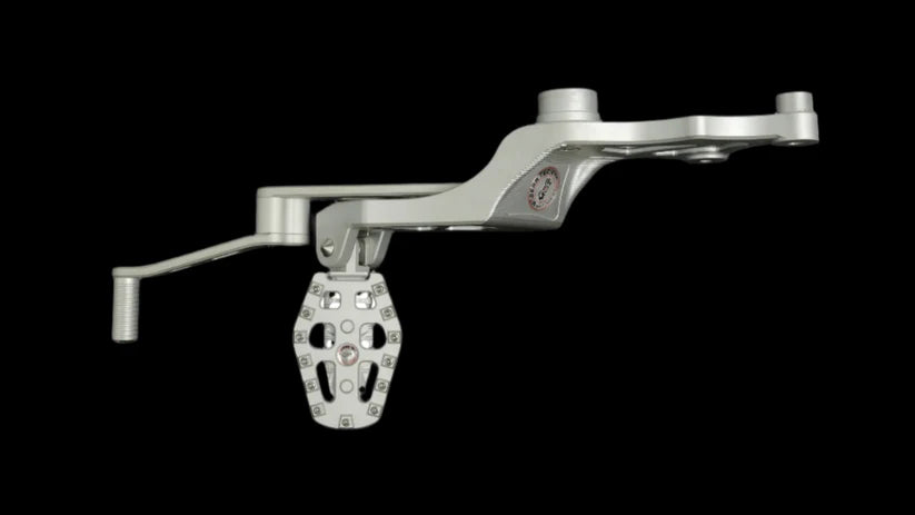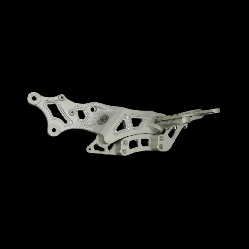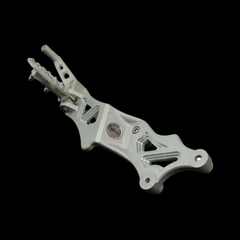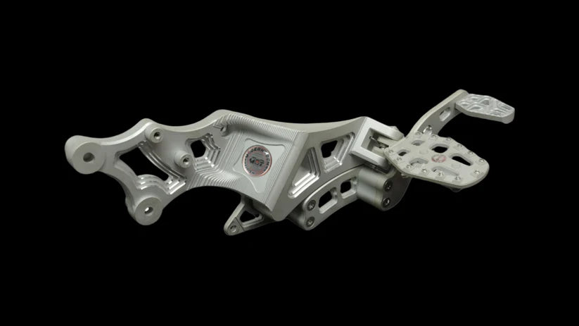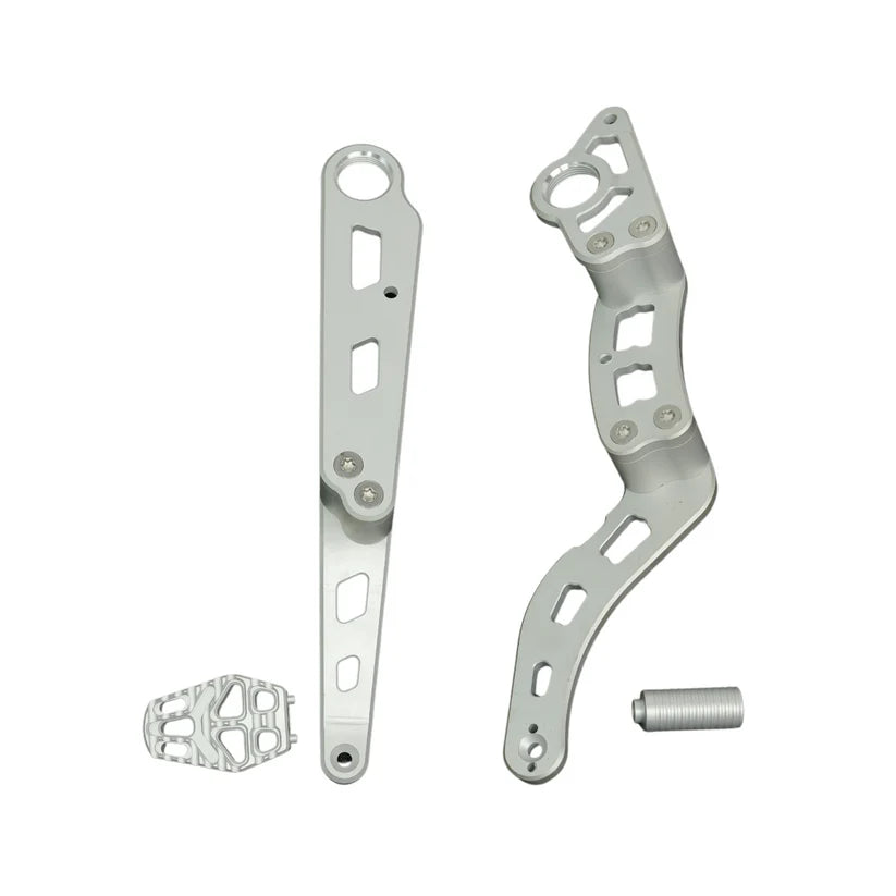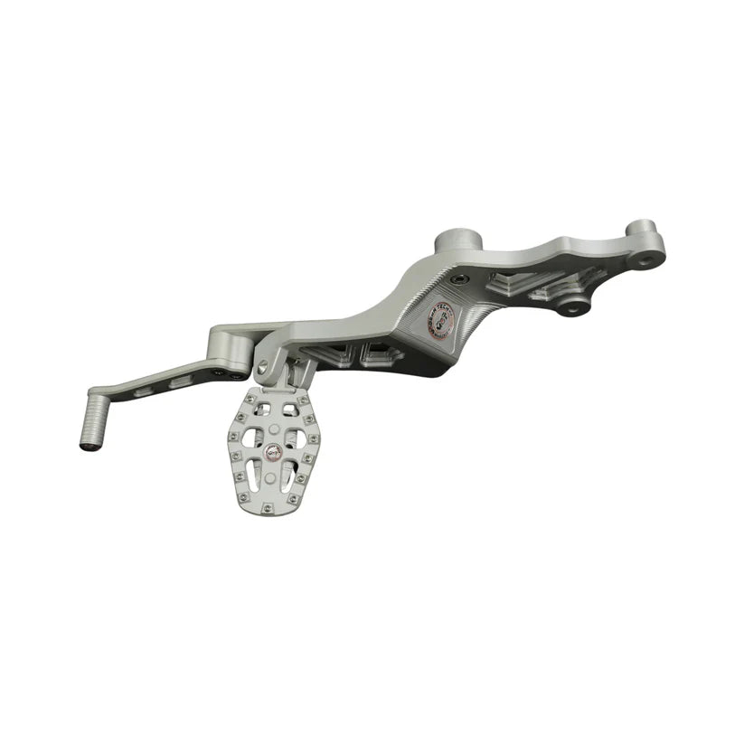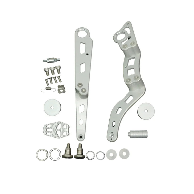 CNC Machined all aluminum construction for reduced weight & strength • All levers on bearings for super smooth shifts and brake lever operations • No Flex on the pegs •Super Easy to install (2 bolts on each side)