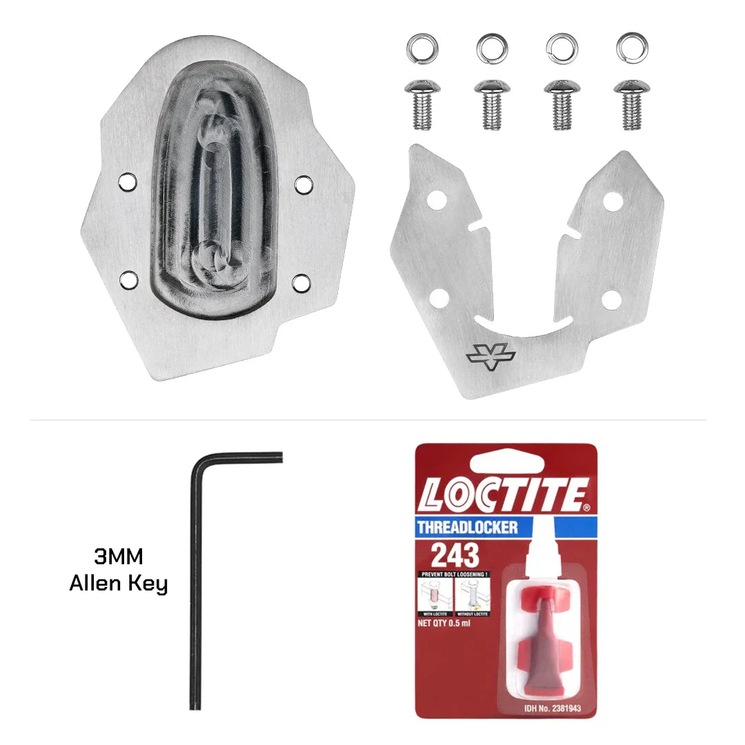 A sidestand shoe improves stability, especially when parking on softer surfaces where your bike would otherwise easily lean over. Our sidestand shoes are specifically designed and made with precision for different types of motorcycles using high quality materials and components. ViaTerra sidestand shoes provide a much larger footprint for your motorcycle, improving stability when parked on uneven or soft surfaces. It makes the side-stand base wider to spread the weight and prevent the bike from sinking into the ground. This is essential for riders exploring new trails or touring where they might encounter different types of surfaces.