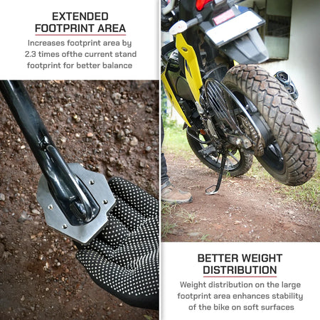 - Increases footprint area by over 2 times providing better weight distribution, thereby enhancing stability of bike on soft surfaces.