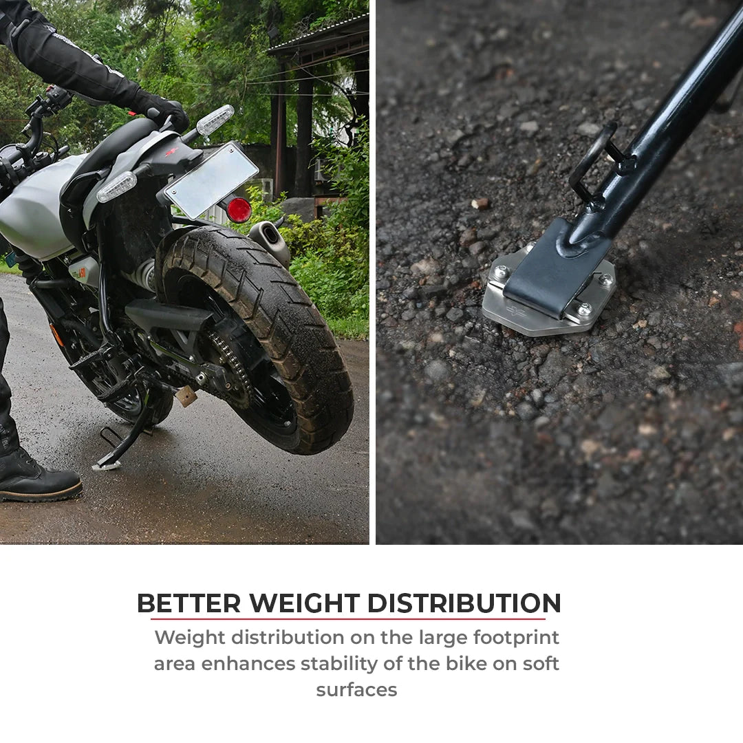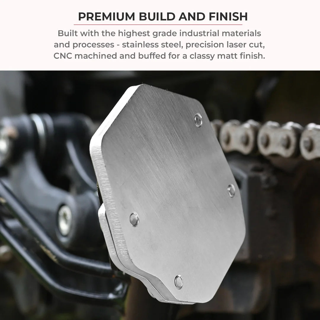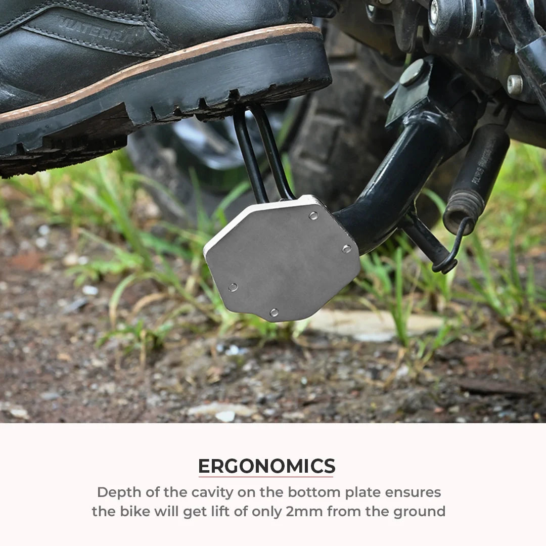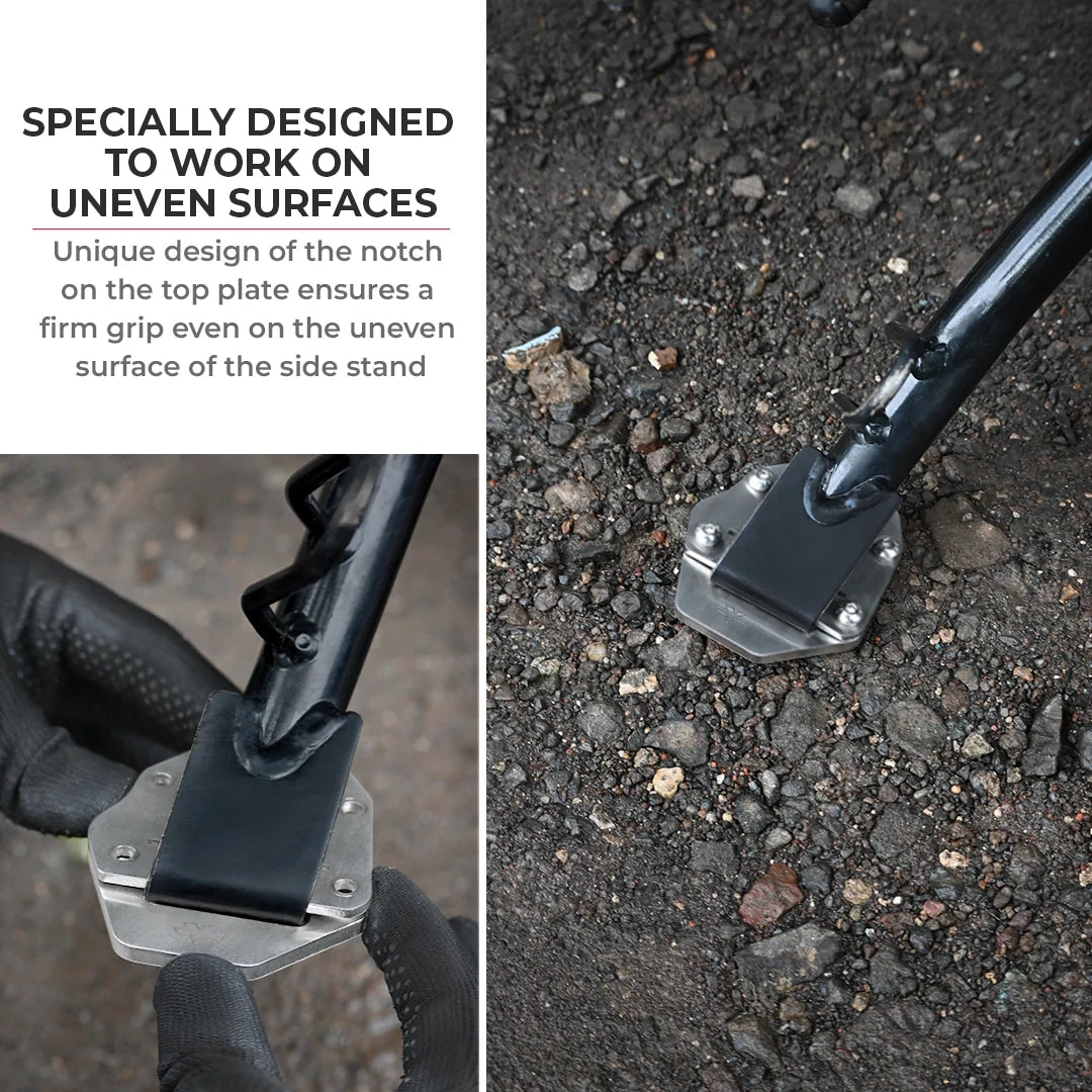 A sidestand shoe improves stability, especially when parking on softer surfaces where your bike would otherwise easily lean over. Our sidestand shoes are specifically designed and made with precision for different types of motorcycles using high quality materials and components. ViaTerra sidestand shoes provide a much larger footprint for your motorcycle, improving stability when parked on uneven or soft surfaces. It makes the side-stand base wider to spread the weight and prevent the bike from sinking into the ground. This is essential for riders exploring new trails or touring where they might encounter different types of surfaces.