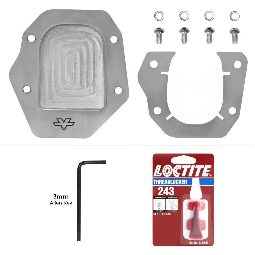 Loctite thread locker and spring washer are provided to prevent the screws from coming loose due to vibrations.