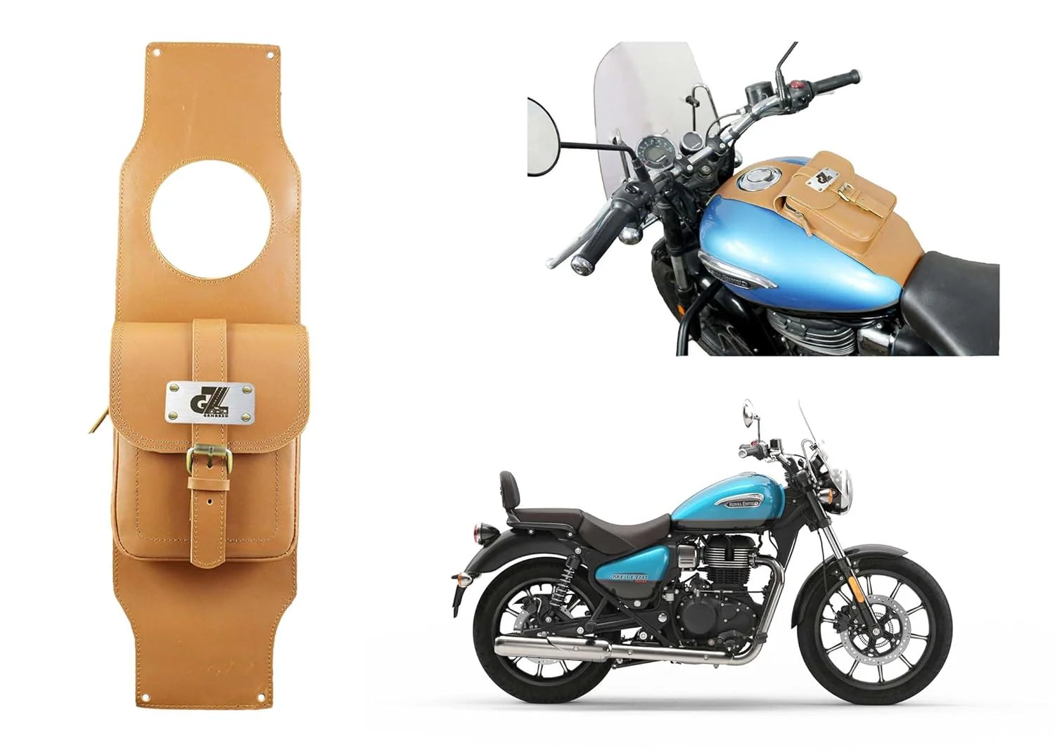 Leather Tank Strap Bag Tan for Royal Enfield Meteor 350