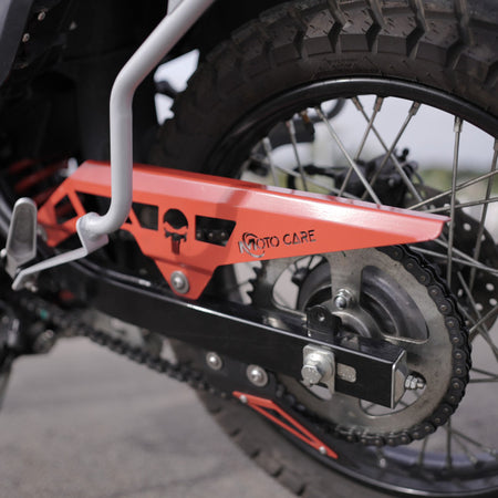 The MotoCare Chain Guard combines protection and style with its sturdy metal construction and striking red finish. Designed for optimal chain coverage, it prevents dirt buildup and adds a custom look to your ride. Ideal for everyday riders and enthusiasts alike.
