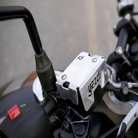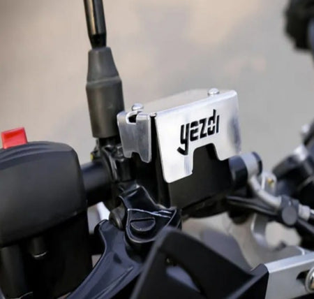 Front Fluid Reservoir Cover for Yezdi Adventure (Aluminium) is designed to provide optimal protection for the front master cylinder, safeguarding it from debris, dust, and other potential damage. Crafted from high-quality aluminium, this cover is both lightweight and durable, ensuring long-lasting performance even in rugged conditions. Its sleek, modern finish complements the design of your Yezdi Adventure, adding a touch of elegance while providing essential protection.